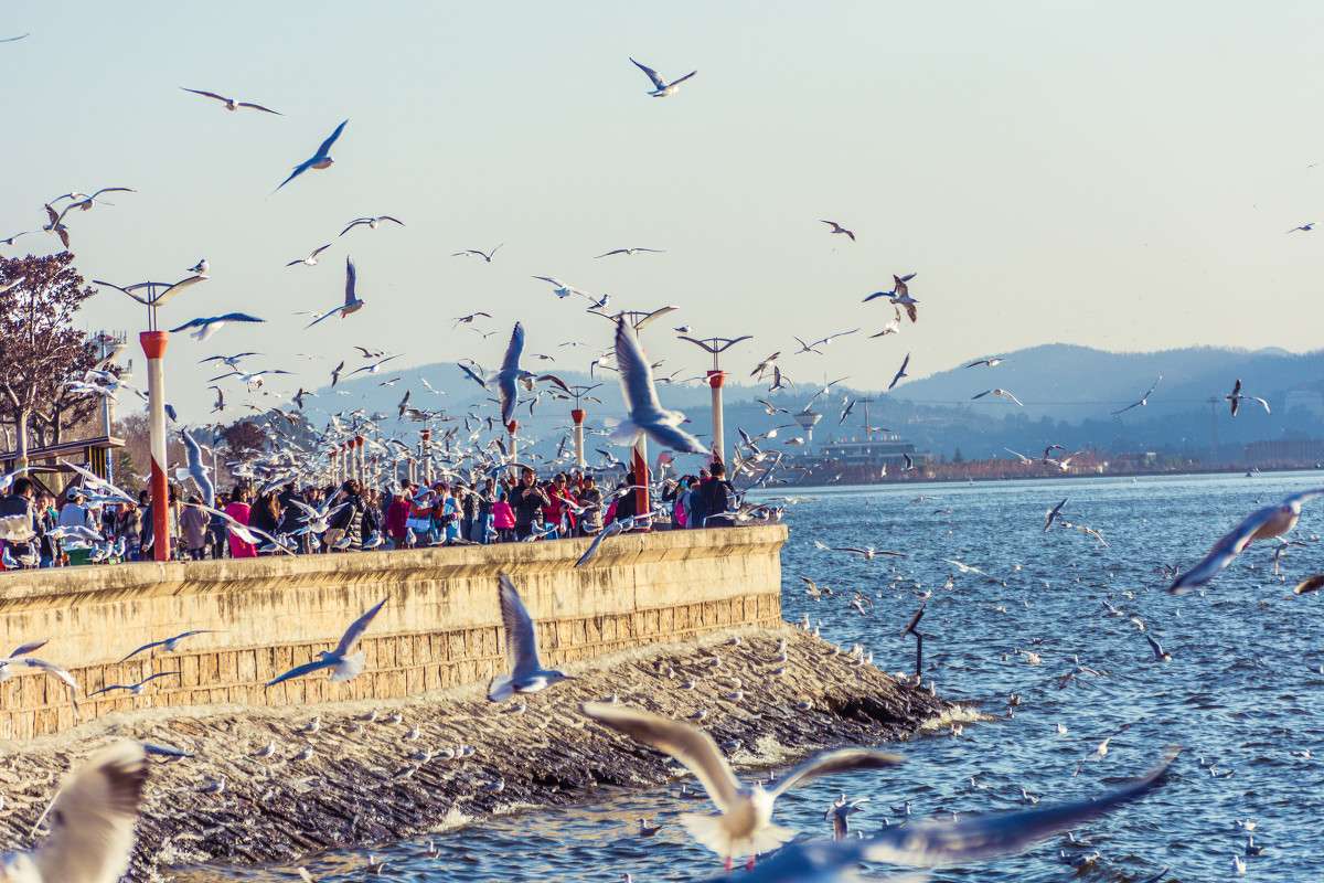 古人稱滇池為“海”,如今,十里長堤綠樹成蔭,飛馳的快船濺起雪白的浪花,湛藍的天空,深藍的大海,碧綠的草地,清新的空氣,向人們展示出大海才有的——海濱風情。到這里您能深深感受到什么是“天高云淡,海闊胸寬”。