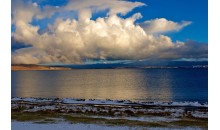 班公湖又稱錯木昂拉紅波,藏語意為“長脖子天鵝”,有世界上海拔最高的鳥島,位于阿里地區日土縣城西北約12公里處,是中國日土縣與克什米爾交界的國際性湖泊,呈東西走向,長約155公里,南北寬約15公里,最窄處僅五米。湖面海拔4240米,水深57米,流域面積為28714平方公里。