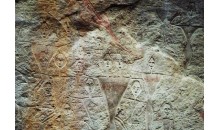 康家石門子巖雕刻畫是一幅國內及世界上罕見的生殖崇拜巖畫。位于昌吉州呼圖壁縣的天山腹地, 兩條山溪匯流處的西北岸的新第三紀的粉砂巖壁上。巖面平整,距地表約10米上下。畫面東西長14米,上下高9米多,整個面積達120平方米左右。上面刻繪著二三百個大小不等,身姿各異的人物和動物。大者高 2.04米,小者19厘米。有男有女,或站或臥,或衣或裸,男女合圖、雙頭同體、三頭同體圖像。