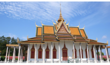 金邊皇宮(Royal Palace),也稱四臂灣大皇宮,建造于1866-1870年 。坐落于金邊東面,面對湄公河、洞里薩河、巴沙河交匯而形成的四臂灣,屬于典型的高棉式建筑。王宮為長方形,長435米,寬402米,外有城墻,里面共有20余座建筑物。建筑極富高棉傳統風格和宗教色彩,多為黃、白兩色,黃色代表佛教,白色代表婆羅門教,所以看上去金燦燦的。