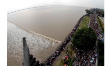 錢江潮,又稱海寧潮。以“一線橫江”被譽為“天下奇觀”。海寧觀潮之風漢時即已蔚然,唐宋時更盛。北宋詞人潘閬所唱“長憶觀潮,滿郭人爭江上望。來疑滄海盡成空,成面鼓聲中。弄潮兒向濤頭立,手把紅旗旗不濕。別來幾向夢中看,夢覺尚心寒。”便是當年“弄潮”與“觀潮”的真實寫照。