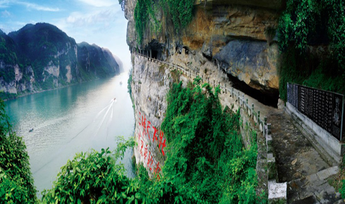 三游洞前,是清澈碧透的下牢溪,水石相擊,飛珠濺玉。沿洞旁小路登上山頂?shù)闹料餐ぃ魈骺梢?jiàn)大江雄姿;在那峰巒疊嶂之中,長(zhǎng)江像一把利斧,辟開(kāi)一線通道,直瀉西陵峽口,激流咆哮,破門(mén)而出,流經(jīng)三游洞旁,則水勢(shì)轉(zhuǎn)平,版權(quán)所有山東聊城聊之旅國(guó)際旅行社有限公司,轉(zhuǎn)載必究!江面豁然開(kāi)闊,呈現(xiàn)險(xiǎn)夷交替之奇觀。三游洞不僅是著名的古跡勝地,同時(shí)也是重要的革命遺址。土地革命時(shí)期,這里曾是中共鄂西特和宜昌縣委的地下交通聯(lián)絡(luò)站,當(dāng)時(shí)廟中“道士”有的是我黨地下交通員。解放后,1958年3月1日,周恩來(lái)為實(shí)現(xiàn)毛澤東“高峽出平湖”的宏偉藍(lán)圖,造福子孫后代,