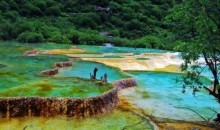 黃龍位于四川省阿壩藏族羌族自治州松潘縣境內,是中國唯一保護完好的高原濕地,與九寨溝相距100千米,海拔1700~5588米,地貌特征是山雄峽峻。因溝中有許多彩池,隨著周圍景色變化和陽光照射角度變化變幻出五彩的顏色,被譽為“人間瑤池”, 黃龍以彩池、雪山、峽谷、森林“四絕”著稱于世,再加上灘流、古寺、民俗稱為“七絕”。景區由黃龍溝、丹云峽、牟尼溝、雪寶鼎、雪山梁、紅星巖,西溝等景區組成,主景區黃龍溝位于岷山主峰雪寶頂下,面臨涪江源流,似中國人心目中“龍”的形象,因而歷來被喻為“中華象征”。