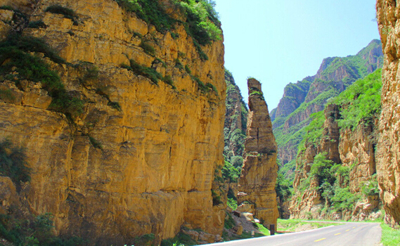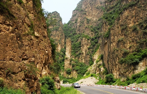 《遼史·地理志》載:“相傳有狐于嶺,食五粒松子,遂成飛狐,故此處地名飛狐口”。這當(dāng)然只是一個(gè)傳說(shuō)。順盤山公路蜿蜒而行,山石聳立,斧劈刀斷一般,四十里飛狐峪幾乎步步都有看點(diǎn),隨處可見(jiàn)喀斯特地貌造就的怪石異峰。“一炷香”孤立而出,傳說(shuō)中楊六郎為爭(zhēng)國(guó)土箭射山峰留下的“箭眼”依稀可見(jiàn)。明崇禎時(shí)大學(xué)士、兵部尚書(shū)楊嗣昌在《飛狐口記》中稱“千夫拔劍,露立星攢”、“有如天門”、“回合萬(wàn)變”。清人吳蘗昌在《北口峪》中稱其山峰造化神奇,“疑神疑鬼,為人力當(dāng)不受”。飛狐峪最寬處只有七八十米,最窄處僅一米左右,頭頂只見(jiàn)一線天,堪稱“一夫當(dāng)關(guān),萬(wàn)夫莫開(kāi)”。