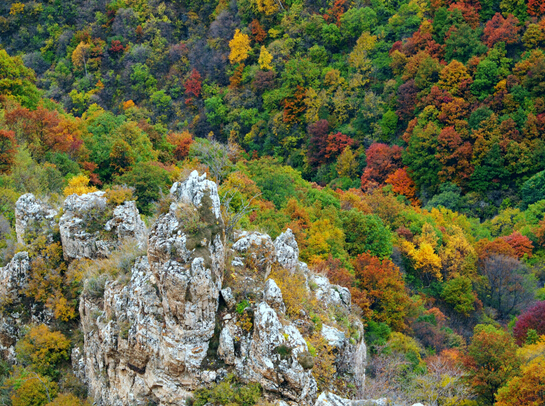 峽谷中,谷寬澗淺,如在盛夏時(shí)節(jié),陽(yáng)光普照,滿山滴翠,空氣清新,鳥(niǎo)語(yǔ)花香。再往前行,只見(jiàn)峰巒閉鎖,兩壁怪石交錯(cuò),明媚的陽(yáng)光已不復(fù)存在,冷風(fēng)習(xí)習(xí)、陰森逼人,只有一線天,亂云飛渡。順山路而進(jìn),時(shí)而陡壁迎面,山窮水盡;時(shí)而峰回路轉(zhuǎn),柳暗花明,別有洞天。當(dāng)?shù)匕傩罩v,四十里飛狐七十二道彎,彎彎有洞天美景,處處含勝景奇觀。峽谷一路前行,有“一炷香”、“雙箭孔”、“三仙思月”、“四將守門”、“五狗望月”、“六郎樁”、“七女峰”、“八仙洞”等奇峰異石,每一處奇觀都會(huì)給人留下無(wú)限遐想。四十里飛狐四十里景,迷宮奇物天作成。它以山峰怪異稱奇,以深幽兇險(xiǎn)稱奇,自古多少兵家因此處山兇地險(xiǎn)而爭(zhēng)戰(zhàn)駐守,多少文人墨客對(duì)奇景嘆妙稱奇留下詩(shī)篇。這里公路通達(dá),車行順暢,更成為旅游觀光、尋覓歷史遺跡的絕好去處。
