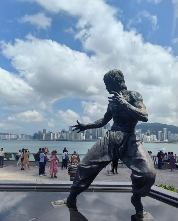 作為表揚香港電影界的杰出人士,地面裝嵌的73名電影名人的牌匾,30多塊有名人打手印,成為香港旅游一個熱點。從香港德高望重的老牌電影人狄龍、楚原、謝賢,到當代國際港片大師吳宇森、徐克、洪金寶、成龍、周潤發(fā)等,都在這里留下了他們的手印。2005年11月27日,武打巨星李小龍的銅像也在香港星光大道揭幕。銅像高2米,按照電影《龍爭虎斗》的造型而制成,以紀念李小龍65歲冥壽。