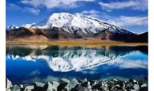 卡拉庫里湖并不是很大,若不是高大的公格爾峰、公格爾九別峰、慕斯塔格峰緊挨著湖邊,卡拉庫里湖著實沒那么出彩。然而有了山就不同了,繞湖一圈,幽藍的山脊倒映在更加幽藍的水面,湖光山色,頗令人有些美好的遐想。湖邊有氈房、木板房可供旅游者下榻,包括新鮮蔬菜在內的風味餐,欣賞帕米爾高原的大好風光。