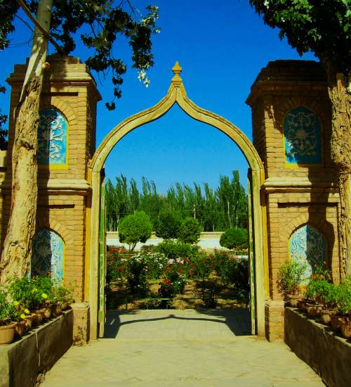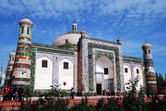 阿帕霍加墓與香妃墓坐落在喀什市東郊5公里處的浩罕村,是一座典型的伊斯蘭教式的古建筑群。陵墓始建于1640年前后。據說墓內葬有同一家族的五代72人。因其中葬有明末清初喀什著名伊斯蘭教“依禪派”大師阿帕霍加而得名。阿帕霍加是墓中第二代人,曾一度奪得葉爾羌王朝的世襲政權,更成為17世紀“依禪派”伊斯蘭教的首領,名望遠遠超過其傳教大師的父親。