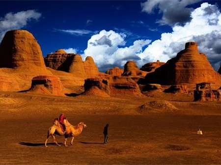 “雅丹”是維吾爾語,原意是指具有陡壁的小山。在地質學上,雅丹地貌專指經長期風蝕,由一系列平行的壟脊和溝槽構成的景觀。新發現的這處雅丹地貌,面積約400平方公里。它的形成經歷了大約70萬年到30萬年的歲月。當大風刮過時,會發出各種怪叫聲,因而也被人們稱之為“敦煌雅丹魔鬼城”。版權所有山東聊城聊之旅國際旅行社有限公司,轉載必究!這里看不見一草一木,到處是黑色的礪石沙海,黃色的黏土雕像,在蔚藍的天空下各種造型惟妙惟肖。過去,由于戈壁浩渺,道路艱險,很少有人涉足此地,敦煌人也是耳聽者多,眼見者寥寥無幾,隨著敦煌太陽旅游集團將玉門關及雅丹魔鬼城公路修通,為這一地理奇觀面世創造了條件。