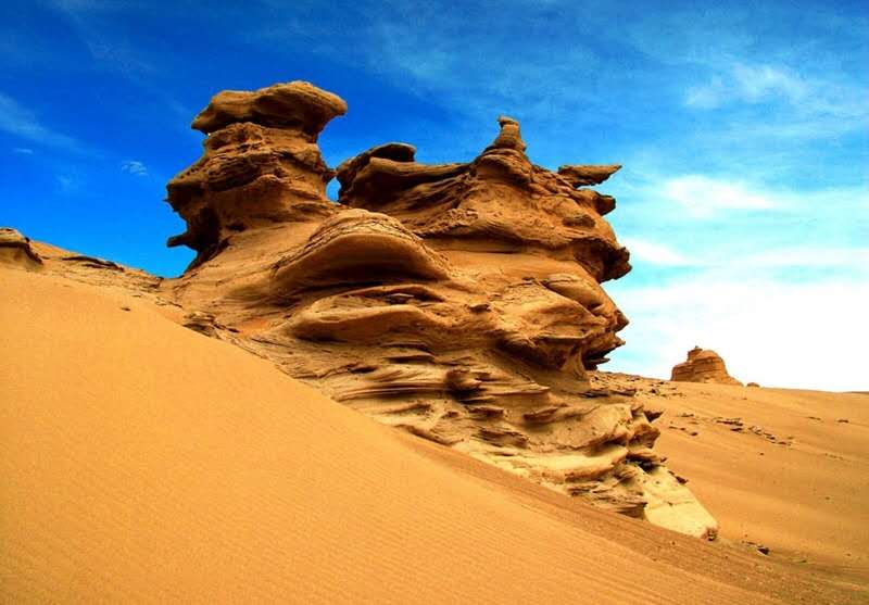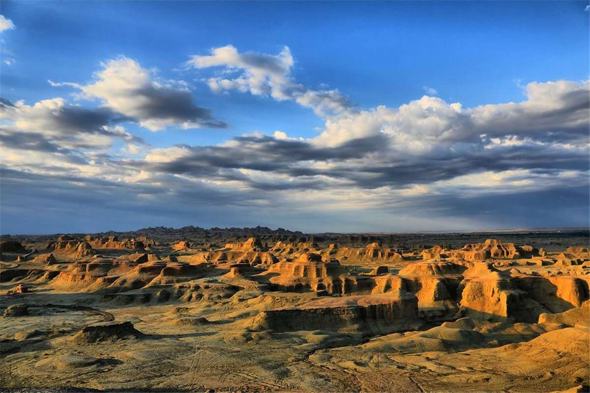 1.2萬年以來的全新世,在洪流和強風的作用下原來平坦的盆地被慢慢沖刷剝蝕。風和流水可以帶走疏松的沙土層,對堅硬的泥巖層和石膏膠結層卻作用有限。版權所有山東聊城聊之旅國際旅行社有限公司,轉載必究!不過致密的泥巖層也并非堅不可摧,荒漠區變化劇烈的溫差產生的脹縮效應導致泥巖層最終發生崩裂,暴露出來的沙土層被風和流水帶走,演變為凹槽狀;依然有泥巖層覆蓋的部分相對穩固,形成或大或小的長條形土墩,這種奇特的地貌形態逐漸凸現出來。