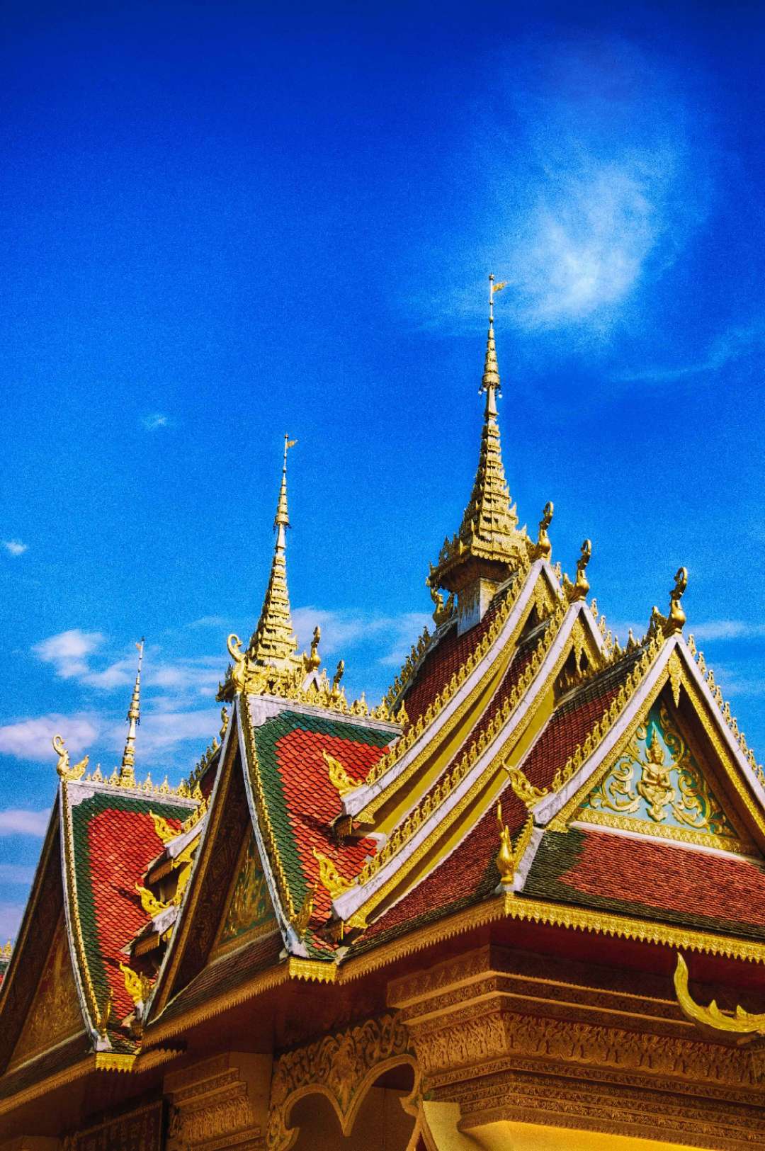 西雙版納傣族佛寺建筑,以重檐多坡面平瓦建筑為主。佛寺大多成方形,坐西朝東,屋頂坡面由三層相疊而成,中堂較高,東西兩側遞減,交錯起落。屋頂使用長方形片瓦,瓦尾鉤在平形的竹制橫椽之上。屋頂正脊及檐面之間的戧脊,用石灰抹平,上面排列各種瓦飾。正脊上的那瓦飾呈火焰狀,戧脊首端大多豎有鳳的形象,風格獨特。各佛寺佛殿內部由佛座、僧座和經(jīng)書臺3部分組成。佛座上塑的釋迦牟尼像,大多是坐像,佛祖的耳朵奇特,又大又寬,成“<”形。身材瘦削,眉清目秀,雙手扶膝,流露出一種神秘的氣氛,使人產(chǎn)生對傣族歷史追溯的好奇心。