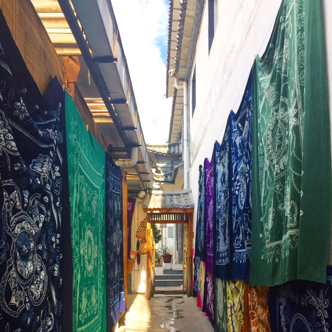 在周城,你還可以看到豐富的民族扎染制品。扎染是周城白族人民明末清初以來的民間傳統(tǒng)工藝,扎染工藝品集文化、藝術(shù)為一體。扎染布由手工針縫線扎,反復(fù)冷染浸制而成,顯色青里帶翠,凝重素雅,精工制作,圖案清新,色彩絢麗,遠銷海內(nèi)外。用扎染布制作的工藝品既充滿濃濃的民族風(fēng)味,也很具現(xiàn)代韻味。
