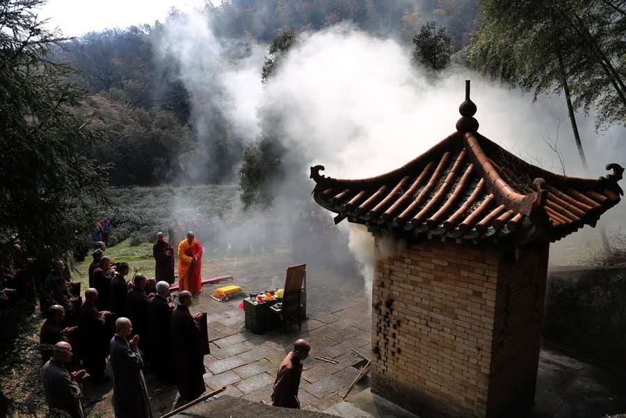 不久,法海禪師行單上的苦行生活圓滿結(jié)束,開始三年的閉關(guān)修行。各類勞作外緣均通身放下,一心參禪。三年圓滿時,不開關(guān)門,師父靈佑禪師親自到關(guān)門外直呼“法海”之名。禪師在關(guān)中應(yīng)聲而出,關(guān)房門窗毫無損壞,是圓滿得道的標志。一時間,合寺內(nèi)外僧俗大眾皆來親近問道,為避俗諱,乃受師命,游歷江西廬山等地,終至江蘇鎮(zhèn)江氏俘山的一片荒林中駐錫禪修。時隔不久,由當?shù)匦疟娬f明,乃知氏俘山中自己的駐地于東晉時曾建過名為澤心寺的道場。在密林的荒煙蔓草間,禪師居然尋獲到已被毀壞的殘佛,于是,法海禪師燃燒一節(jié)指,誓愿重修道場,為眾生樹立伽藍。于是開山挖田,刻苦勞作,漸漸贏得當?shù)孛癖娭С郑_始建設(shè)寺院。