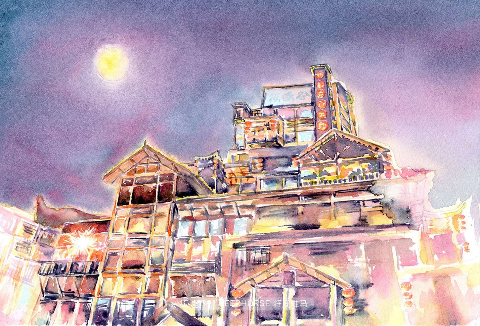 展現(xiàn)的是“另類美食城”的景色,位于第4層,集中了中外名店。臨江一面有工匠當(dāng)街打糍粑、切桃片、烤制花生糖,以及現(xiàn)場演繹美食特產(chǎn)制作工藝,臨崖一面有小吃店,旦旦面、豬兒粑、大湯圓、歌樂山辣子雞、黔江雞雜,老重慶毛血旺等。