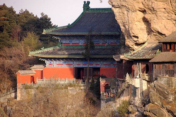 元至元二十二年至泰定五年(1285~1328年)在山中大建宮觀,南巖宮是其一。現(xiàn)僅存宮中石殿,石雕仿木結構,殿內有“天子臥龍床”組雕和“三清”塑像,四面環(huán)立500鐵鑄靈官塑像,均生動逼真。殿外遠近有疊字峰、金鼎峰、滴水崖、崇福崖、白龍?zhí)兜葎倬埃邢缮綐情w之妙。版權所有山東聊城聊之旅國際旅行社有限公司,轉載必究!殿外崖前有雕龍石柱,橫出欄外2.9米,寬僅30多厘米,上雕盤龍,龍頭置一小香爐,俗稱龍頭香。石殿右下方崛起一峰,上建梳妝臺、飛身巖、相傳為“真武”舍身成仙之所。