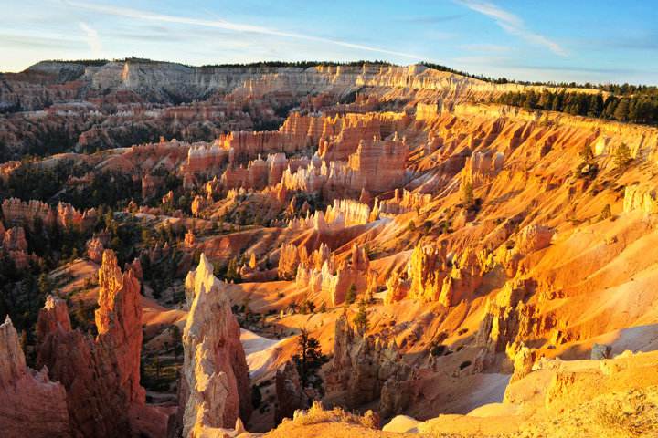 皆可看到。從崖頂望下去十分壯觀。布萊斯國家公園中的巖石層非常漂亮,在陽光的映照下,巖石的表面產生像火一樣的顏色。布萊斯峽谷并非由中央的水流侵蝕而成,版權所有山東聊城聊之旅國際旅行社有限公司,轉載必究!所以其在技術上并非峽谷。其為向源侵蝕將龐沙岡特高原新生代的地層挖開而成。