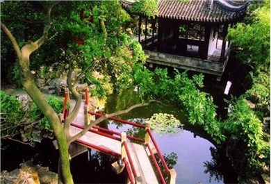 西花園環(huán)境幽雅寧?kù)o,具蘇州書齋花園的特色。