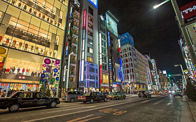 銀座(ぎんざ)是日本東京中央區的一個主要商業區,號稱“亞洲最昂貴的地方”,象征著日本的繁榮,以高級購物商店聞名。這里匯聚著世界各地的名牌商品,街道兩旁巨型商場林立,時尚、個性的服飾隨處可見,算得上是一個購物者的天堂。