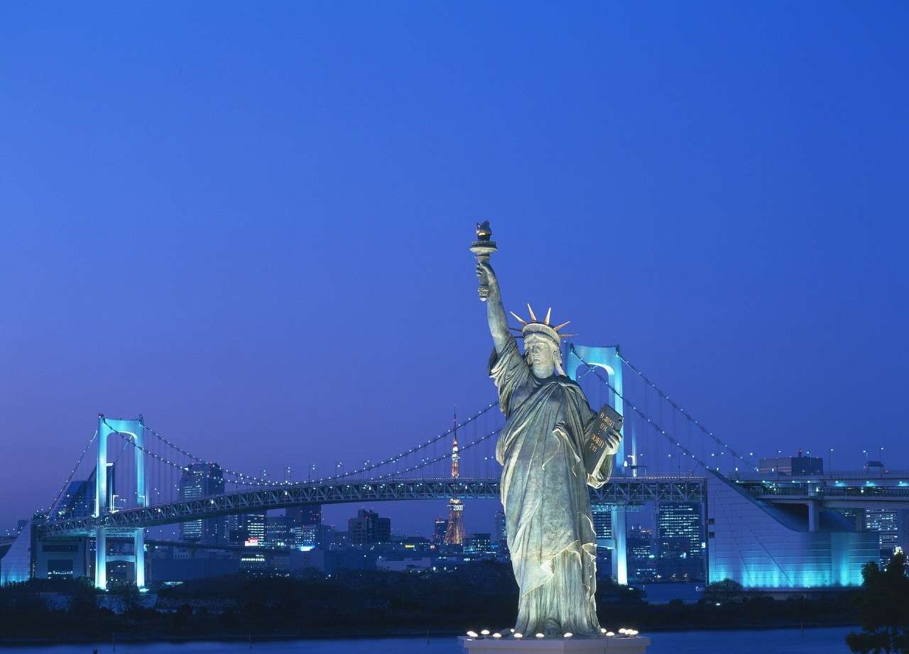 現在設置在臺場的自由女神像,是原物歸還后,在回應一片惋惜聲中制作的復制品,雖然如此,現在她已變成臺場的標志。以彩虹大橋為背景,與女神一起合影留念是不可缺少的活動項目了。