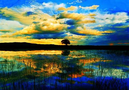 花湖位于四川若爾蓋和甘肅郎木寺之間的213國道旁,是熱爾大壩草原上的一個天然海子。熱爾大壩是我國僅次于呼倫貝爾大草原的第二大草原,海拔3468米?;ê浀涞臅r間是在五六月份,湖畔五彩繽紛,好像云霞委地,而湖中則開滿了水妖一樣的絢麗花朵,這種植物看起來平淡無奇,在雨水充沛的八月把純藍的湖水染成淡淡的藕色,時深時淺,像少女思春時低頭的一抹酡紅。