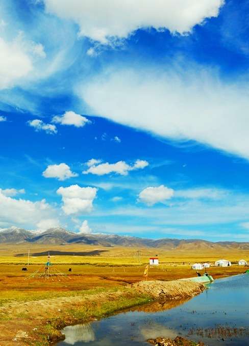 起日月山,西止青海湖,一脈清凌凌的水,靜靜地,悄悄地,溫柔地流淌著,蜿蜒四十多公里。不見滔滔,不聞嘩嘩,象雨中的一束彩虹,象夜空中一條流動(dòng)的星河,清冽淡泊,透明晶瑩,涓涓綿長(zhǎng),這便是倒淌河,一條從東往西流的河。