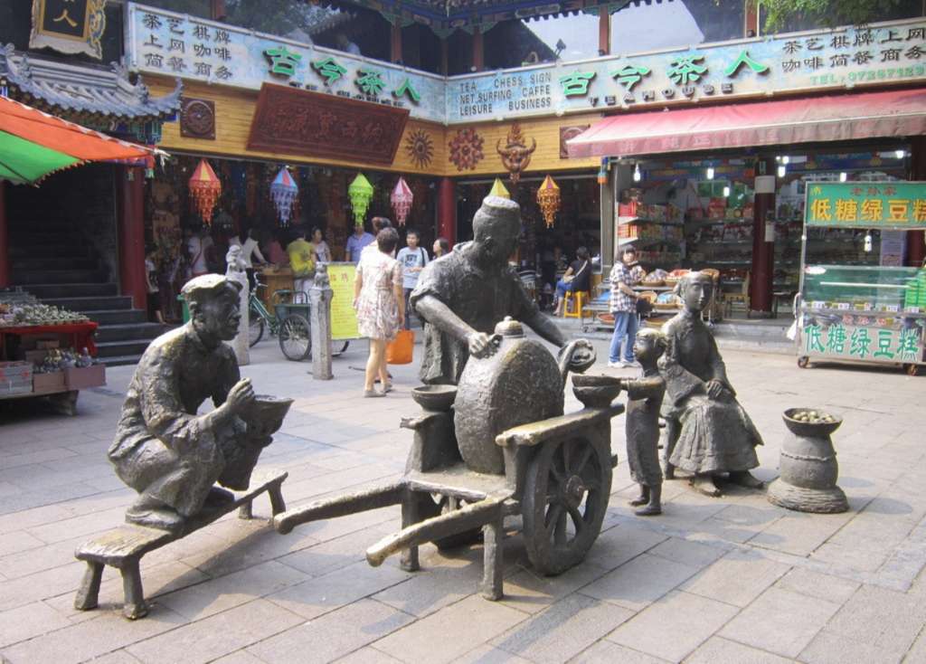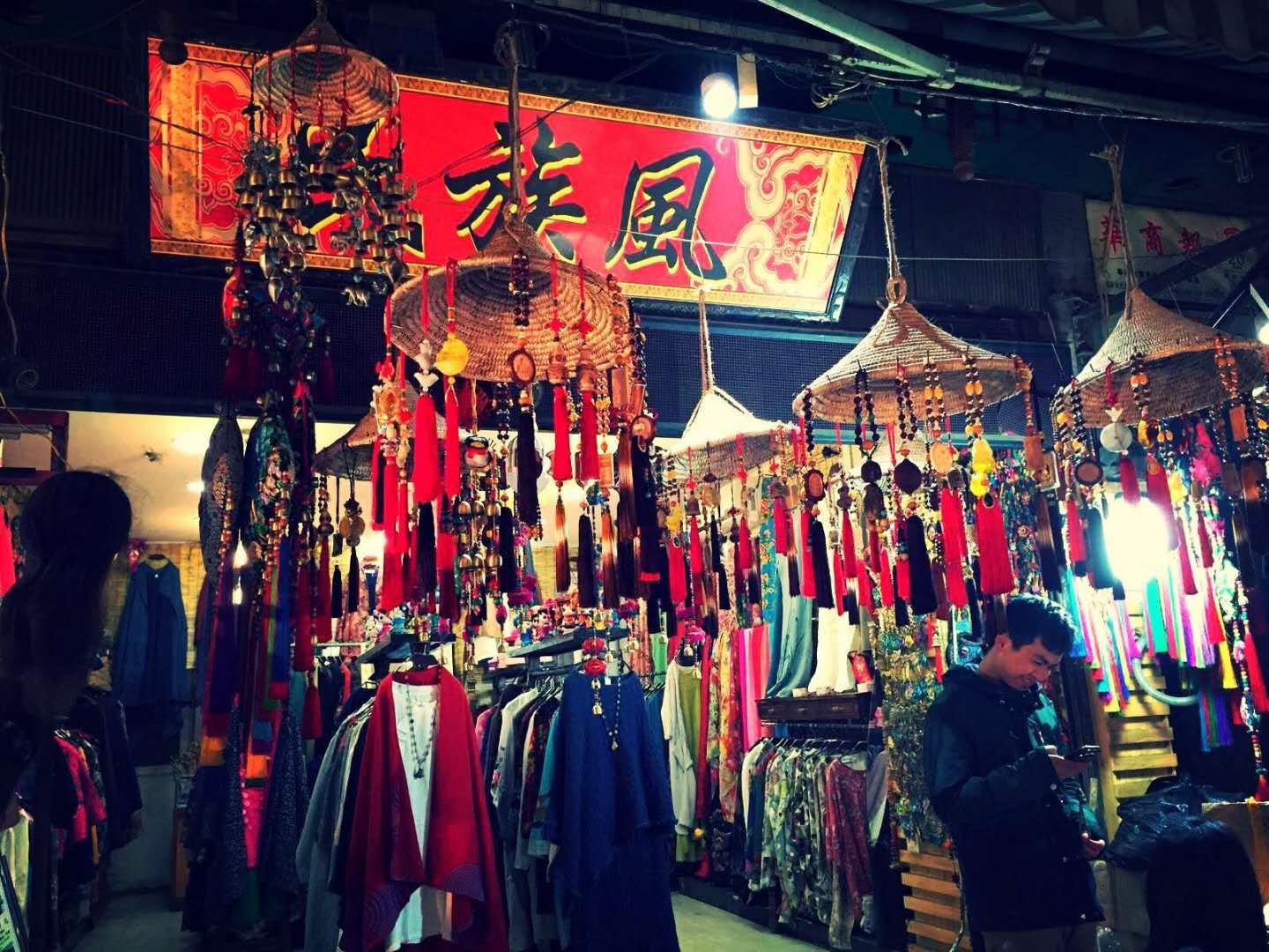 滿為患,連店門口也會擺滿桌椅。烤肉串、涮牛肚的煙火在不甚明亮的燈光下彌漫整條街,熙熙攘攘的人群都是邊逛、邊吃,看到小攤上中意的東西就和攤主還還價。還可以到鼓樓廣場的座椅上歇歇腳,看賣風箏的小販把數十米長的風箏一直放到馬路對面的高樓頂上,一切都充滿真實熱鬧的生活熱情。