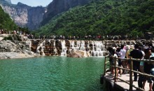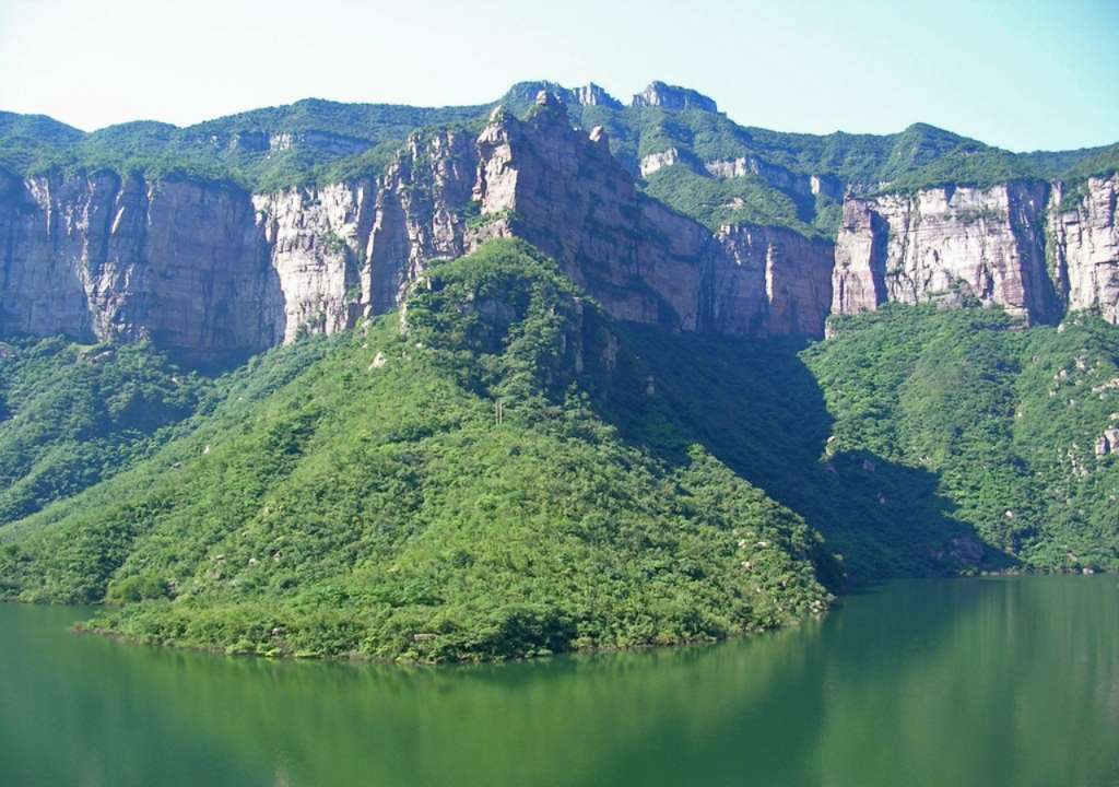 見龍瀑又名潭頭瀑,因其上游的潭頭古村落而得名。見龍瀑布每年限時開放,猶如見龍在田(只在每年春季出現)故名見龍瀑。見龍瀑從海拔580米的斷崖上跌落到海拔260米的溝底中,落差達320米,瀑布最大流量可達3000立方米/每秒,似云龍飛騰,聲威勢大,氣貫如虹,號稱‘中原第一瀑’,展示出一幅‘山因水而靈秀,水因山而雄厚’的生動畫卷。