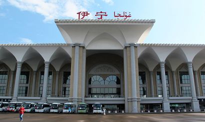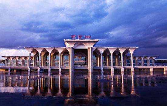 火車位于伊寧市西北,距市中心6千米。占地面積280公頃,其中站房建筑面積1.2萬平方米,站前廣場2萬平方米。由貨場、站房、綜合維修中心、機務段、客車技術整備所、站修所等部分組成;預留集裝箱貨場、站場,設8條股道,4條貨場裝車線。旅客吞吐量1500人/天,屬中型鐵路旅客車站。