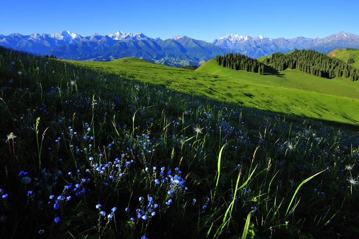 昌吉市地貌類型大體分為山地、平原、沙漠三大部分。整個地勢為南高北低,呈階梯狀,南北高差4000多米。南部山地為天山山區,天格爾山等55個海拔400米以上的山峰橫空矗立。中部為沖積平原,北部沙漠屬古爾班通古特大沙漠一部分,沙丘為固定和半固定型,丘間地勢平坦。