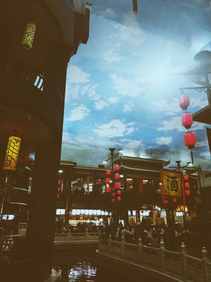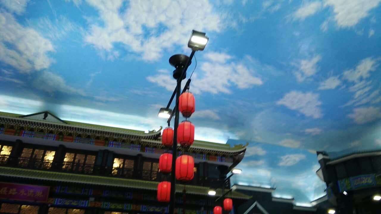 抬起頭,房頂噴繪的藍(lán)天白云,加上周?chē)〕詳傌溕砩系墓叛b,制作木板年畫(huà)的老師傅縱橫的皺紋,以及路邊一排繡娘手中的銀針,讓來(lái)者一時(shí)忘憂。