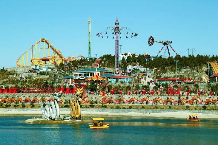 五龍山·響水河游樂園,位于輝縣市區(qū)東北方向5公里處的常村鎮(zhèn),游樂園一期工程共投資1.2億元,建成了水上樂園、滑雪場、百鳥園、冰雕世界和178米長的空中走廊。 游樂園二期工程,概算投資8000多萬元,新建 “過山車”、 “大擺錘”、 “太空梭”、 “激流勇進(jìn)”等大型陸地游樂項(xiàng)目,于2014年2月動工,春節(jié)開園運(yùn)營。 總投資2億多元,占地面積3600畝,由五大主體工程組成的五龍山響水河游樂園,氣勢宏偉、規(guī)模壯觀,是集休閑、游樂、度假、觀光、垂釣、采摘、餐飲于一體的豫北地區(qū)規(guī)模最大、最具體驗(yàn)價值的綜合性游樂園。地址:河南省新鄉(xiāng)市輝縣常村鎮(zhèn)常北村類別:樂園開放時間:09:00~17:30;所在地:新鄉(xiāng)。
