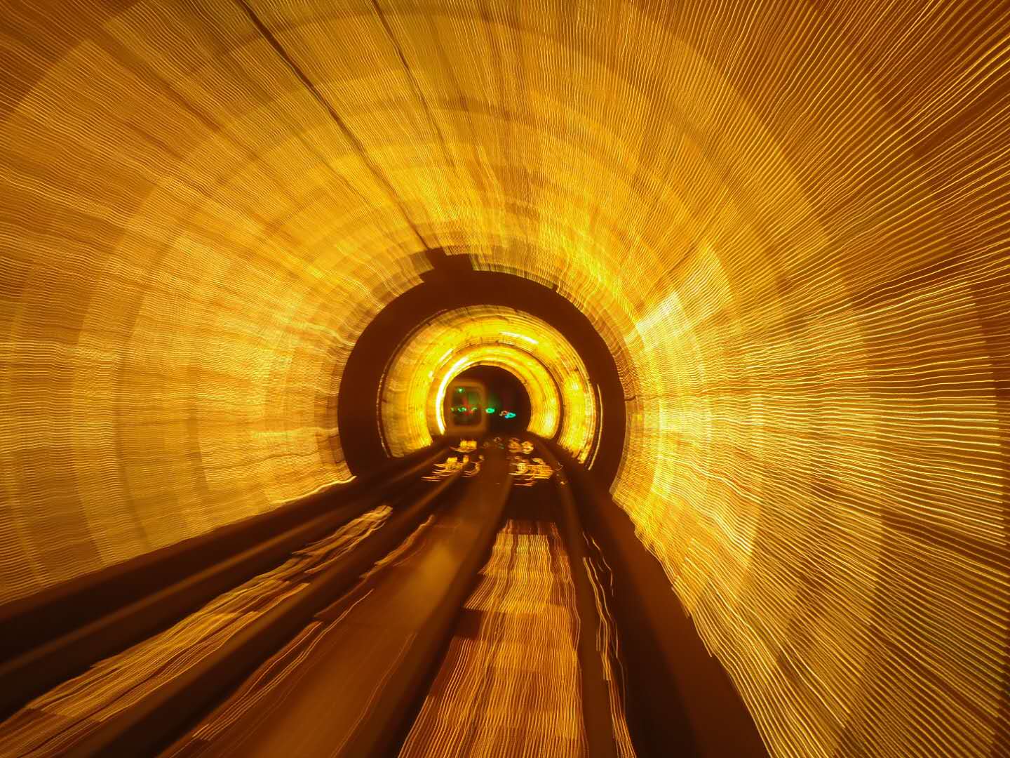 外灘觀光隧道通過聲、光、電、激光等高科技手段,在直徑僅6.76米、長646.7米的圓隧道內制作五光十色的動態景觀。雖然過江時間只有5分鐘,但游客將經過八個景色不同、內涵各異的景區。首先經過的是“時光隧道區”。