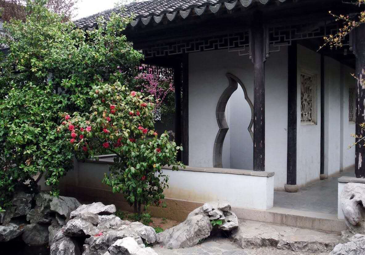從尚賢堂右邊門穿越一條幽長的備弄,即進入以古廣玉蘭為中心的春景區。