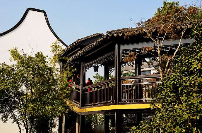嚴家花園的廳堂建筑宏敞精麗,堂堂高顯,顯示出嚴正的氣度和性格。而進入園區,其建筑則顯得精巧活潑,豐富多彩,樓閣亭軒廊榭錯落有致,富于變化,體現出造園者精湛的造園藝術。