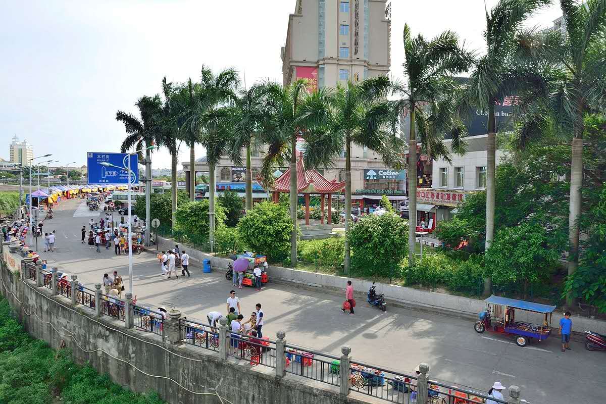芒街與我國的東興市之間僅隔一條北侖河,從東興出境,跨過不足百米長的北侖河大橋即進入越南芒街。