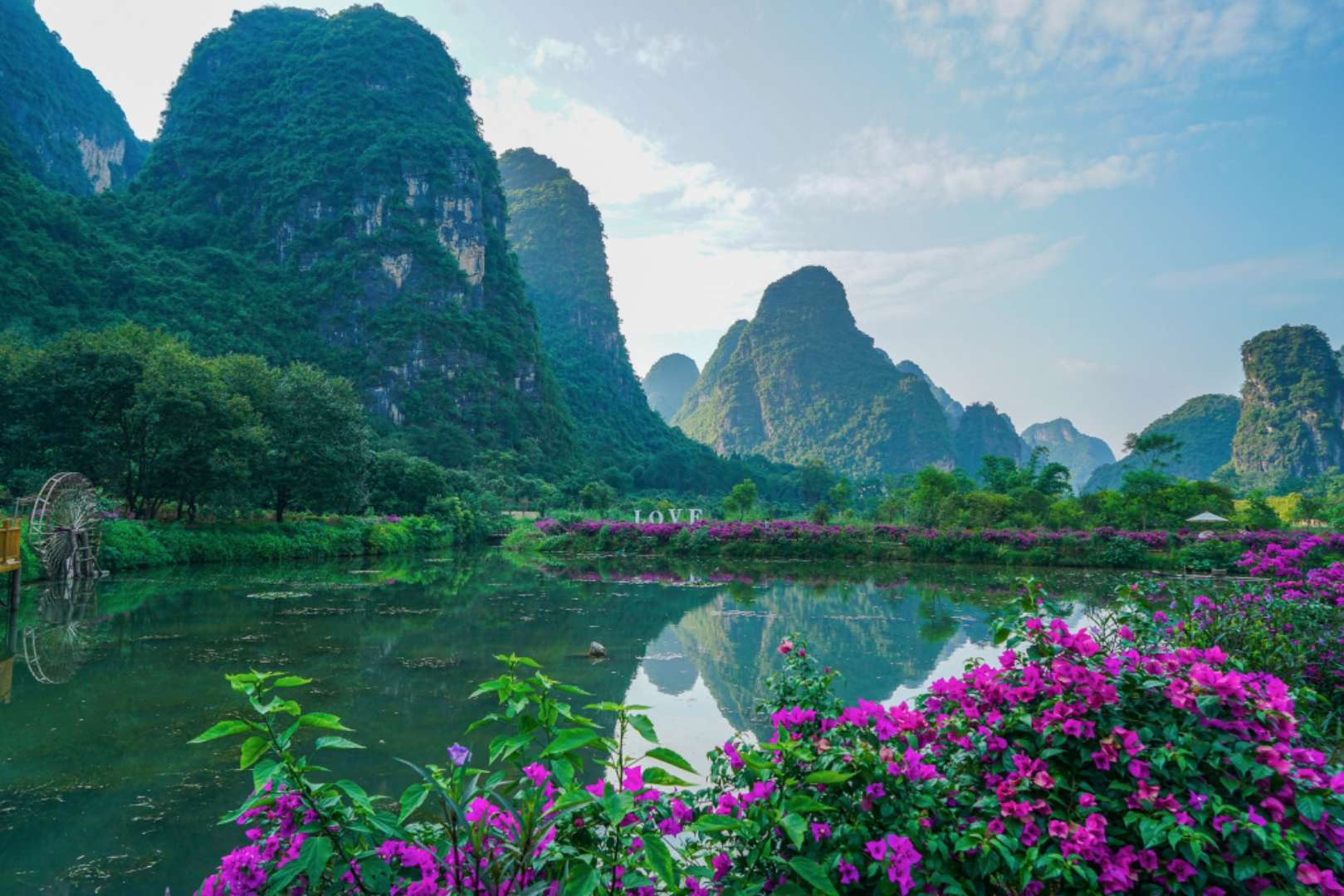 進入月亮山旅游風景區在月亮山,沿路奇峰美景,田園秀色,許多山巖形狀獨特給人遐想,如詩如畫,被稱為陽朔十里畫廊。當年美國總統卡特來陽朔游覽,他從打前站的保鏢們那里得知,十里畫郎有許多小景特別有趣,坐汽車會一晃而過。卡特聽后,臨時向接待人員提出改變游覽方案,借了幾輛自行車漫游了十里畫郎。為此,政府于2000年專門修建一條近10里的自行車道、觀景臺、休息亭等以供游人自由觀賞沿途風景。當地百姓稱其為卡特風景道。
