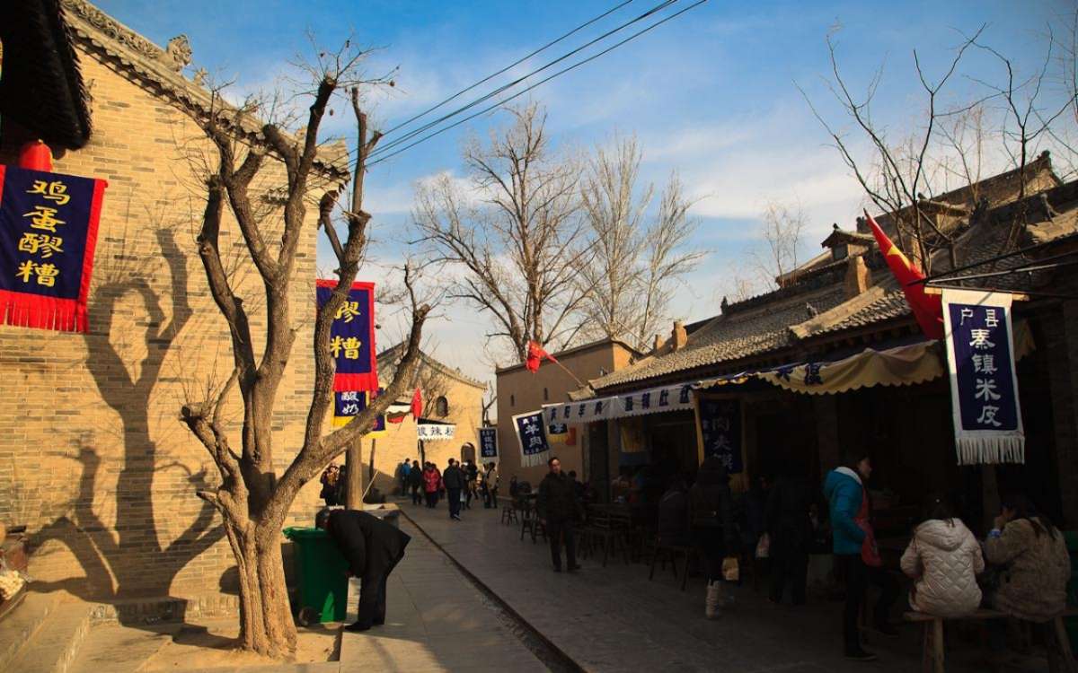 走進古樸典雅的小巷,兩邊店鋪林立,作坊鱗次櫛比。有油坊德瑞恒、醪糟坊稻香村、豆腐坊盧氏豆腐、辣子坊天一閣、面坊五福堂、茶坊童濟功、醋坊五味齋、布坊永泰和、藥坊同順堂------醋坊中,一壇壇、一瓶瓶手工釀造的純糧醋,散發(fā)著誘人的清香;面坊中,興致勃勃的游人饒有趣味的推動著沉重的石磨,白白的面粉緩緩地溢出來;布坊里,滿面滄桑的媽媽坐在古老的織布機前細(xì)心地織著漂亮的土布;油坊中,那巨大的老木制成的榨油器令人嘆為觀止;藥坊中飄出的淡淡藥香若有若無地在鼻間縈繞;…… 踩著腳下仿古的青石板,欣賞著頗具關(guān)中風(fēng)味的明清式建筑。