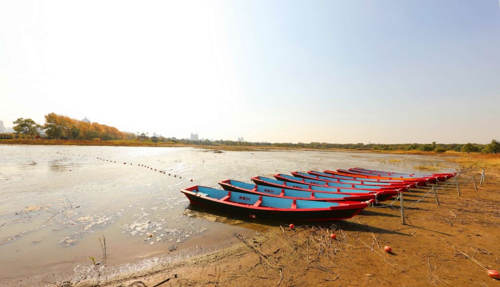 白樺林:白樺林與紅柳林以路相隔,一側是紅柳綠波,一側是疏密有致的白樺林。白白的枝干,排列有序的屹立在路旁。