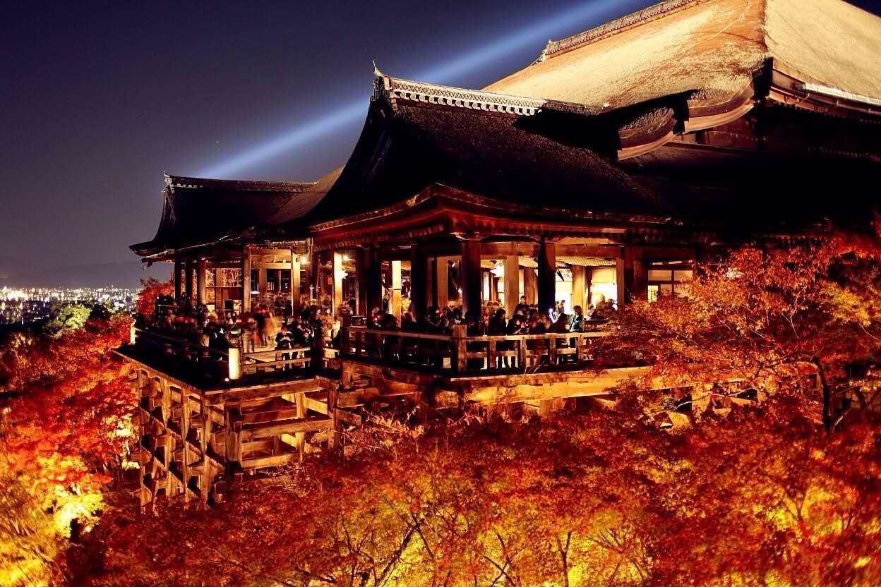 清水寺,一個(gè)來了京都必然要去的地方,春櫻秋楓,這里從來都是京都的熱門名所。花見小路上偶遇粉妝艷抹的京都藝伎,華麗的和服,嬌艷的頭飾,舒緩的舞姿,燈火下,是夢(mèng)幻一樣的溫柔凄美。穿過庭院,來到“清水大舞臺(tái)”,磅礴壯闊的京都秋色美景盡收眼底。清水寺外,二年坂、三年坂游人如織,熱鬧非凡。這,才是最地道的京都。