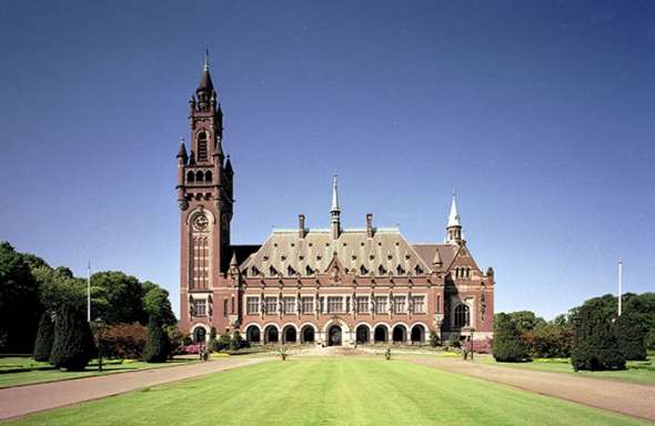 Cour internationale de Justice (CIJ) 國際法院是聯合國的主要司法機構,院址在荷蘭海牙的和平宮,亦稱“海牙國際法庭”。它依據《聯合國憲章》和所附的《國際法院規約》于1946年4月成立。