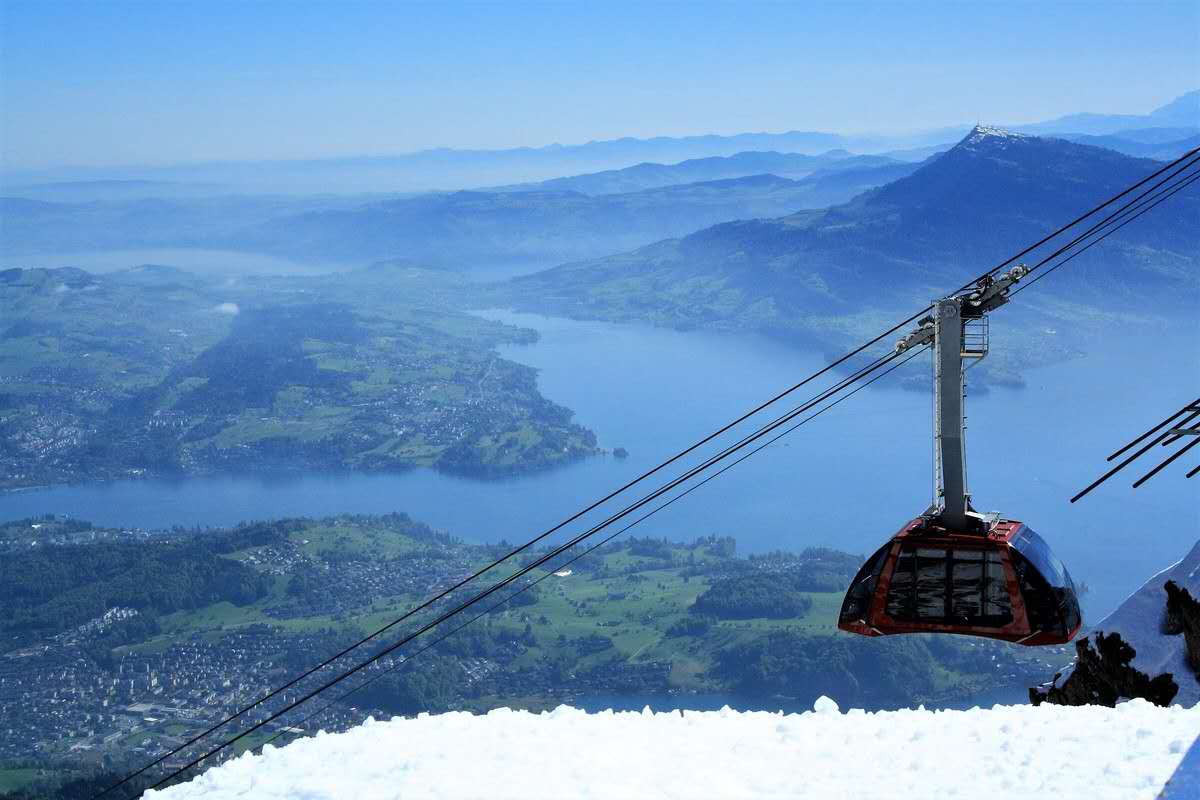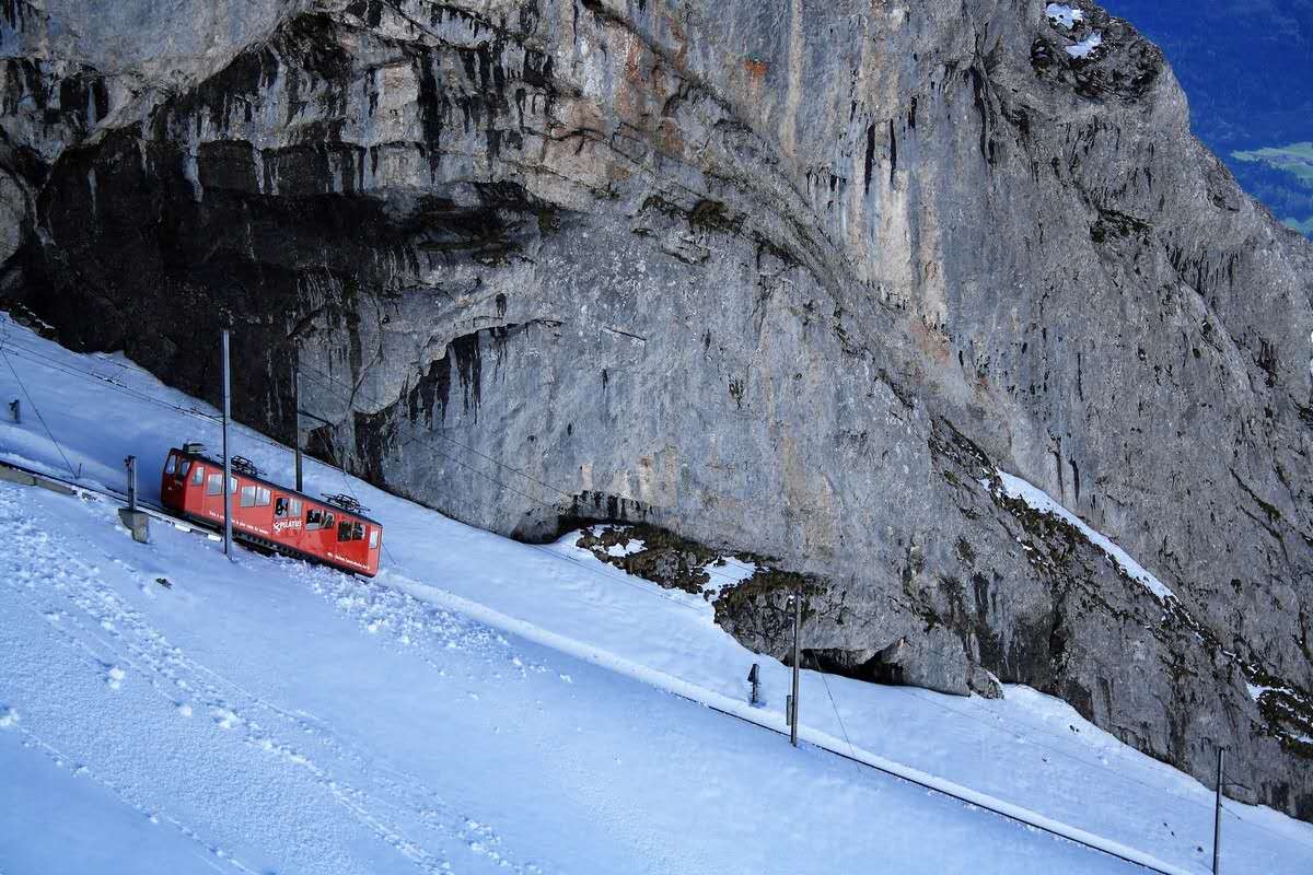 可以乘坐世界上最陡峭的齒軌登山列車從琉森湖畔的Alpnachstad出發登頂。