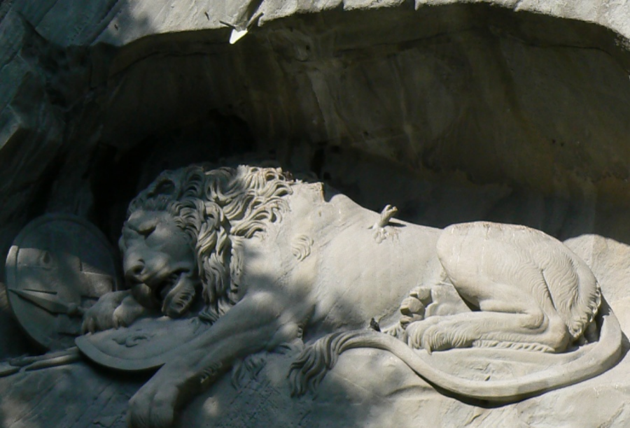 獅子紀念碑(Lion Monument)是琉森盧塞恩)數一數二的雕刻作品,一支箭深深地插進了瀕臨死亡的雄獅背上,獅子面露痛苦的神情,前爪按盾牌和長矛,盾牌上有瑞士國徽。