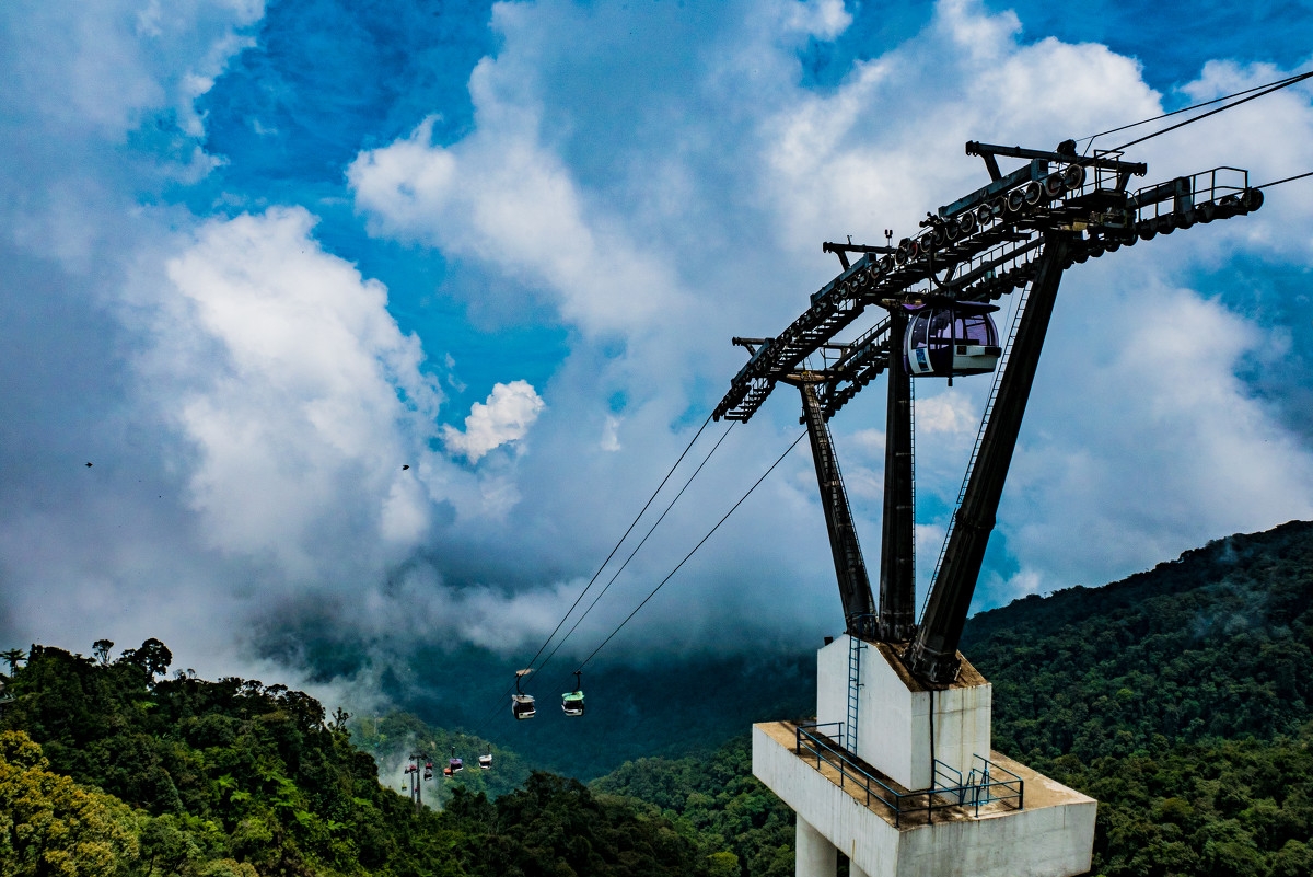 云頂纜車從位于梧桐再也的云頂纜車站出發,直達美星酒店。云頂纜車由馬來西亞第四任首相拿督斯里馬哈蒂爾·本·穆罕默德醫生于1997年2月21日主持開幕。云頂纜車以每8人一車廂并在一小時內載送2000名乘客上山。它的極速為每秒6公尺,只需大約15分鐘便能完成3.38公里長的登山路程。隨著纜車的緩緩上升,馬來西亞特有的奇花異草,以及各種只有熱帶才有的植物、動物和鳥類躍然眼前。往往纜車坐到半山腰就能看到云霧繚繞,如入仙境,到了山頂,室外也經常是云里霧里,看來“云頂”這個名字確實也是有點說法的。