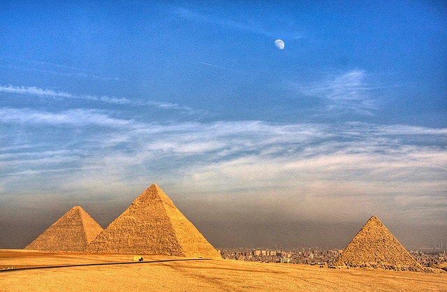 金字塔在埃及和美洲等地均有分布,古埃及的上埃及、中埃及和下埃及,今蘇丹和埃及境內(nèi)。現(xiàn)在的尼羅河下游,散布著約80座金字塔遺跡。 大小不一,其中最高大的是胡夫金字塔,高146.5米,底長230米,共用230萬塊平均每塊2.5噸的石塊砌成,占地52000平方公尺。石塊之間沒有任何黏著物,靠石塊的相互疊壓和咬合壘成。國王哈佛拉的金字塔前,還矗立著一座象征國王權(quán)力與尊嚴(yán)的獅身人面像。埃及金字塔是古埃及的帝王(法老)陵墓。世界七大奇跡之一。數(shù)量眾多,分布廣泛。開羅西南尼羅河西古城孟菲斯一帶的金字塔是占有集中的一部分。