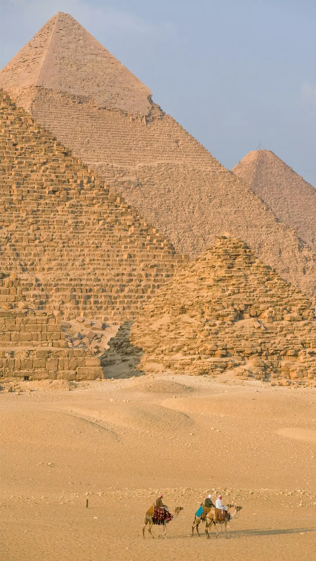 埃及共發(fā)現(xiàn)金字塔96座,最大的是開羅郊區(qū)胡夫的三座金字塔。
