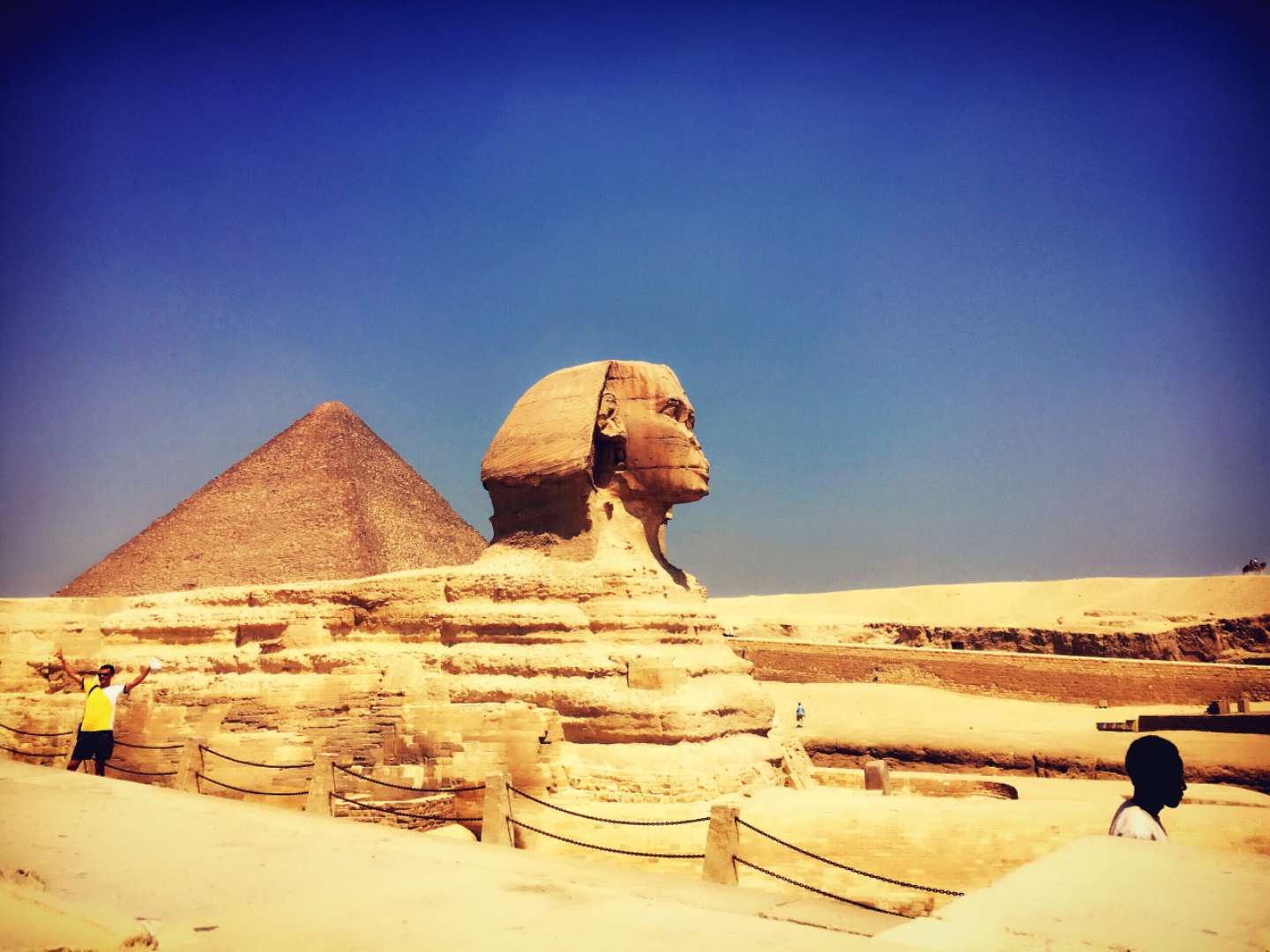 如果不說金字塔是世界奇觀,就不能說是到過了埃及。從開羅西行數公里,來到吉薩村前。在便屹立眼胡夫金字塔東側,便是獅身人面像,它以誘人的魔力,吸引了各地的游客。“怪物”--斯芬克斯獅身人面像的頭像,真的是以胡夫作模特兒的嗎?不過比較可惜的是獅身人面像的鼻子被打破了,有損美觀及協調性。