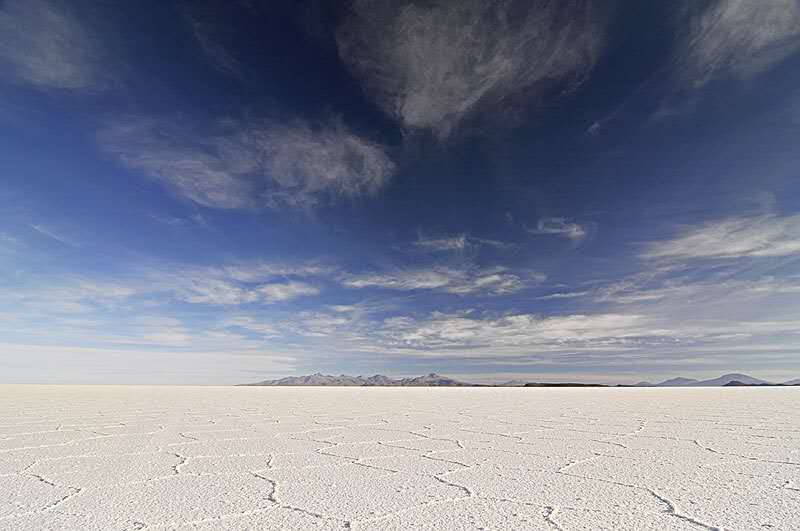 據(jù)說大約4萬年前,這里原本是一個巨大湖泊,湖泊干涸后,就形成了一塊月牙形狀的鹽沼地也就是如今的烏尤尼鹽沼。烏尤尼鹽沼晝夜溫差極大,而且氣候干燥,不過當(dāng)你漫步在鹽沼的天地,浸沒在純白的世界里,會徹底被這令人窒息般的美麗所折服。這里除了一些仙人掌以外沒有其他植物生長。每個湖泊的色彩和結(jié)構(gòu)各異,根據(jù)鹽中所含的礦物質(zhì)不同而呈磚紅色、綠色、青綠色或銀灰色。眼前亮晶晶閃動的不是冰,而是鹽。在一望無際的白色世界里,人們感受到了世外桃源般的純凈與美麗。烏尤尼鹽沼不僅擁有美到極致的自然風(fēng)光,還是許多珍稀動植物生活的天堂。生長了千年的仙人掌、稀有的蜂雀、還有粉紅的火烈鳥,它們的身影為烏尤尼鹽沼增添了勃勃生機。
