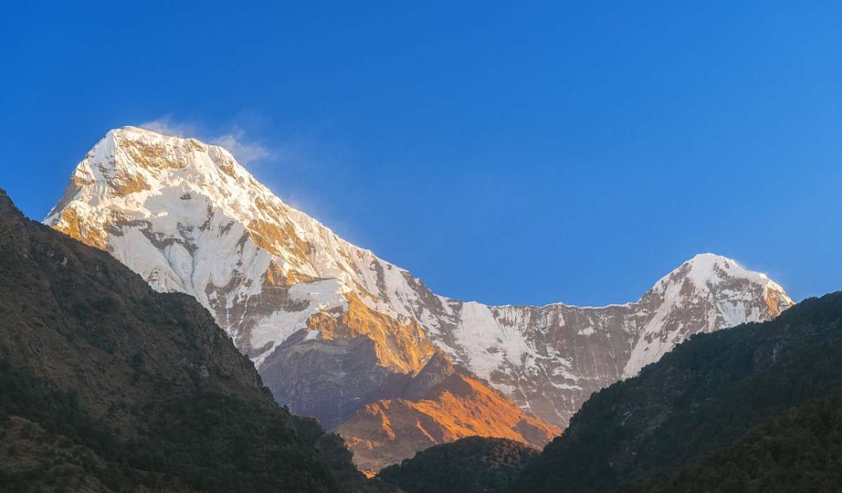 一個意義在于她是群峰中位置最靠南的,從薩朗科(Sarangkot)看過去的話直線距離只有30千米左右,峰體看上去最為高大,有一種鶴立雞群般的霸氣外露,在現代測量技術誕生之前,當地人一直是把她當作安納布爾納峰群中的最高峰來崇拜的。