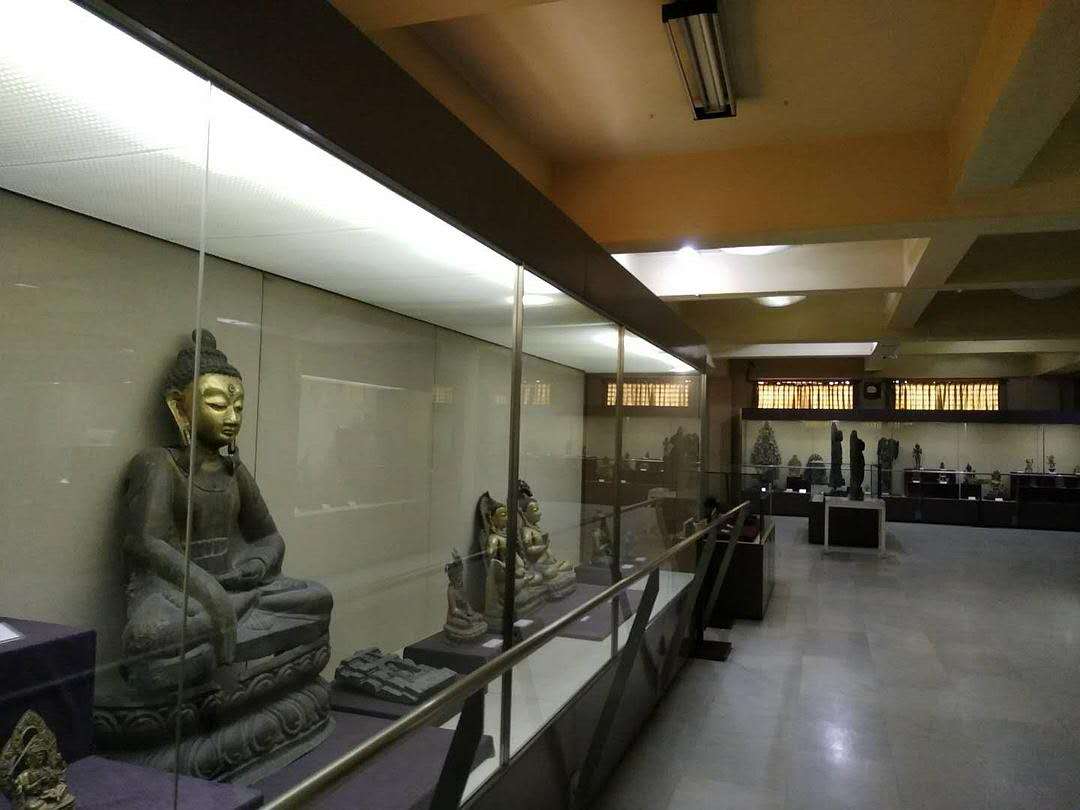 館內(nèi)分石雕、古畫、木刻、鑄像等陳列館,陳列有 2 世紀(jì)的菩薩、7 世紀(jì)的釋迦牟尼之母摩耶夫人的雕像,是尼泊爾古代雕刻、鑄造、繪畫藝術(shù)薈萃之處。藝術(shù)館底層陳列室,有許多常人一般大小的泥塑群像。他們雖然服飾各異,但造型非常生動(dòng),形象逼真。這里是尼泊爾各民族風(fēng)尚的藝術(shù)陳列館,稱為民族館,共有 13 組塑像,分別表現(xiàn)了尼泊爾人民的風(fēng)俗人情。博物館大院的南面,是馬亨德拉國(guó)王紀(jì)念館。這是一幢重檐寺廟式建筑,門楣檐柱刻滿神像,屋頂橫列 7 座小尖塔。館內(nèi)分 13 個(gè)陳列室,以實(shí)物和圖片、錄音帶和影片等資料,反映了馬亨德拉的生平經(jīng)歷和生活。博物館還特辟有兒童室,主要陳列世界各地的蝴蝶和鳥、獸標(biāo)本。