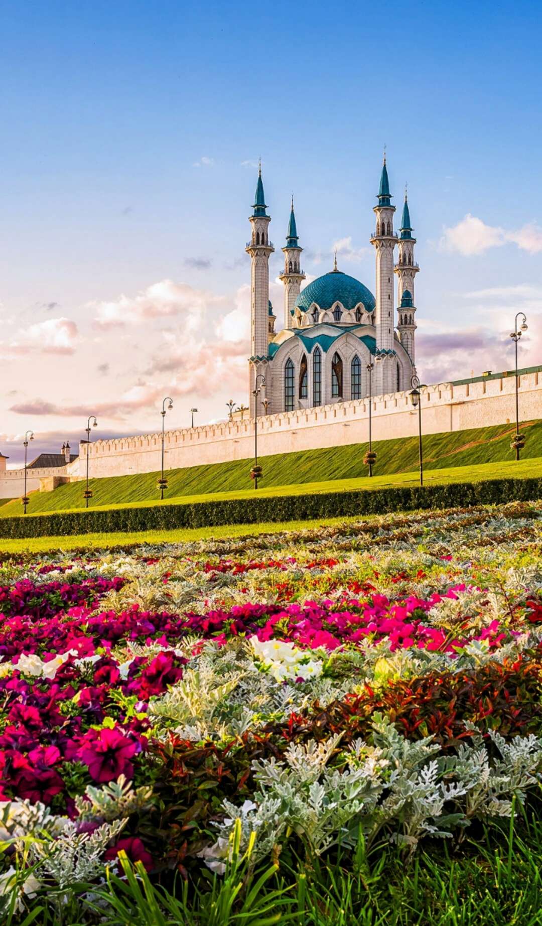 克里姆林宮的“克里姆林”在俄語中意為“內城”。蒙古語中,是“堡壘”之含義。位于俄羅斯首都最中心的博羅維茨基山崗上,南臨莫斯科河,西北接亞歷山大羅夫斯基花園,東北與紅場相連,呈三角形。保持至今的圍墻長2235米,厚6米,高14米,圍墻上有塔樓18座,參差錯落地分布在三角形宮墻上,其中最壯觀、最著名的要屬帶有鳴鐘的救世主塔樓。5座最大的城門塔樓和箭樓裝上了紅寶石五角星,這就是人們所說的克里姆林宮紅星。克里姆林宮享有“世界第八奇景”的美譽。